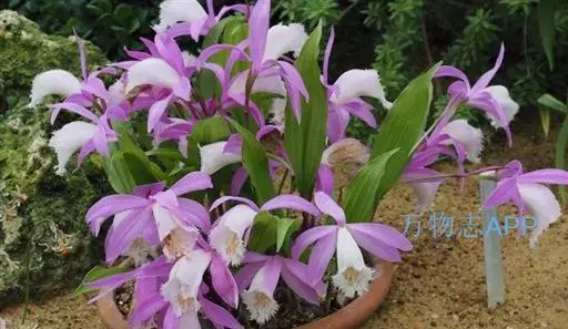 台湾独蒜兰(学名:Pleione formosana Hayata):半附生或附生草本。假鳞茎压扁的卵形或卵球形,上端渐狭成明显的颈,绿色或暗紫色,顶端具1枚叶。叶在花期尚幼嫩,长成后椭圆形或倒披针形,纸质。花葶从无叶的老假鳞茎基部发出,直立,长7-16厘米,基部有2-3枚膜质的圆筒状鞘,顶端通常具1花,偶见2花;花白色至粉红色,唇瓣色泽常略浅于花瓣,上面具有黄色、红色或褐色斑,有时略芳香;花瓣线状倒披针形,长4.2-6厘米,宽10-15毫米,稍长于中萼片,先端近急尖;唇瓣宽卵状椭圆形至近圆形,长4-5.5厘米,宽3-4.6厘米,不明显3裂。花期3-4月。