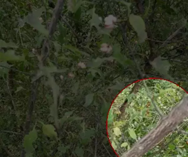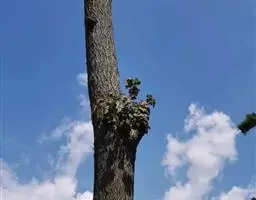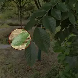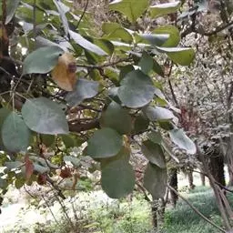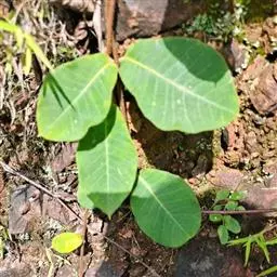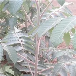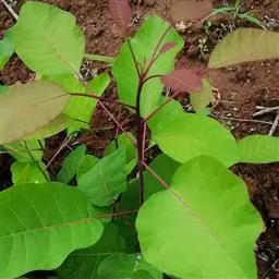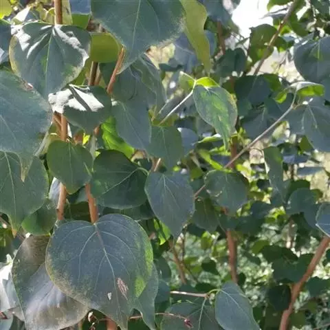 粉背黄栌叶卵圆形,较大,长3.5-10厘米,宽2.5-7.5厘米,无毛,但叶背显著被白粉;叶柄较长,1.5-3.3厘米,与欧洲产的原变种显著不同。