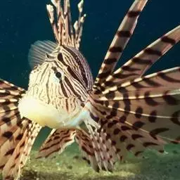 斑鳍蓑鲉是鲉科,蓑鲉属硬骨鱼。体长25-40厘米,体表黄色,布有红色至棕色条纹。背部有毒棘,胸鳍羽…