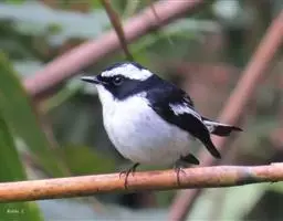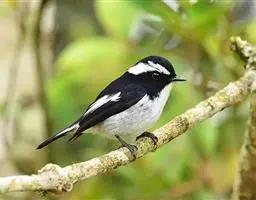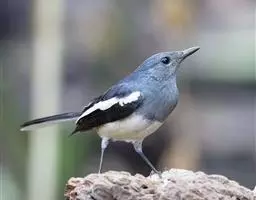 雌鸟和雄鸟基本相似,但上体较灰、呈灰沙褐色,头无黑色,脸和头侧棕褐色微沾黑色。两翅和尾褐色,内侧翅上覆羽沙皮黄色,飞羽外翈具窄的沙色羽缘,腰和尾上覆羽白色。尾黑色,基部白色。眉纹不明显,下体从颏到尾下覆羽皮黄白色,胸和两胁较暗较褐。