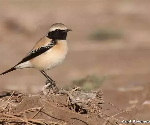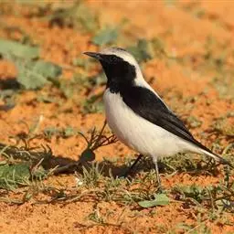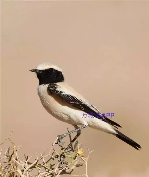 漠䳭(学名:Oenanthe deserti)是鹟科、䳭属小型鸟类,体长14-17厘米。雄鸟上体沙棕色,腰和尾上覆羽白色,两翅和尾黑色,尾基部白色,眼纹白色,眉纹以下整个脸和头侧以及颏、喉黑色,其余下体白色。雌鸟和雄鸟大致相似,但颏、喉白色,脸和头侧亦不为黑色而呈暗棕褐色。特征明显,野外不难识别。