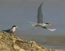 剪嘴鸥:是鸟纲、剪嘴鸥科的中型水鸟,体长40-43厘米。嘴粗,长而侧扁,基部较宽。下嘴较上嘴显著为长。…