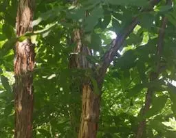 落叶乔木,高8-10米。树皮灰褐色或深褐色,深纵裂。小枝无毛,当年生枝绿色,多年生枝灰褐色,具圆形皮孔。冬芽小,卵圆形;鳞片锐尖,外侧微被短柔毛。