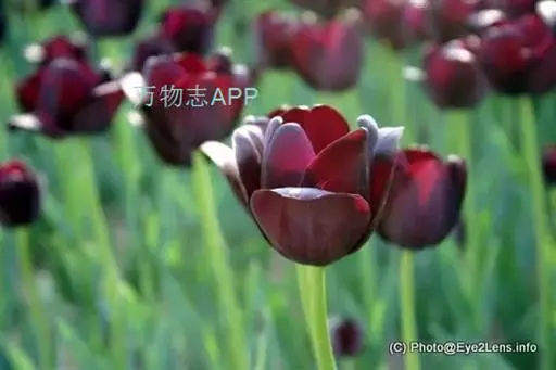 郁金香被爱称为“迷人的酒杯”,其亮丽鲜艳的色彩计人眩目。开黑色花的郁金香被人们认为是稀世奇珍,来之不易。在法国大作家大仲马的《黑郁金香》中,曾这样描述“艳丽得让人睁不开眼, 完美得让人透不过气来”。多年来,经过人工培育出来的美妙无比的郁金香黑色品种,有“绝代佳人”、“黑皇后”、“夜皇后”、“黑金