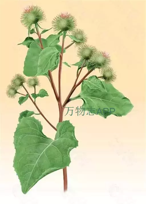 16.《本草备要》:一名鼠粘子,一名恶实。泻热解毒。辛平。润肺解热,散结除风,利咽膈,理痰嗽,消斑疹,利二便,行十二经,散诸肿疮疡之毒,利腰膝凝滞之气。性冷而滑利,痘证虚寒泄泻者忌服。实如葡萄而褐色,酒拌蒸,待有霜拭去用。根苦寒,竹刀刮净,绞汁,蜜和服,治中风,汁出乃愈。捣和猪脂,贴疮肿及反花疮。肉反出如花状。