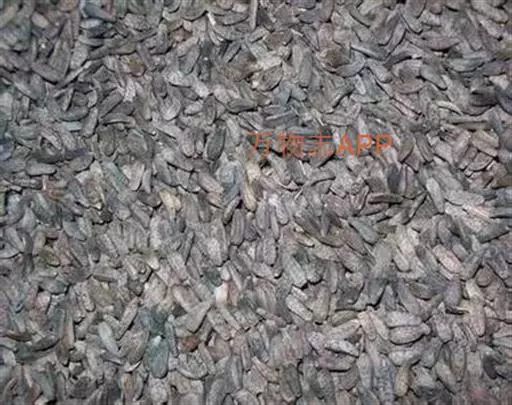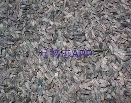 瘦果长倒卵形,两端平截,略扁微弯,长5-7mm,直径2-3mm。表面灰褐色或淡灰褐色,具多数细小黑斑,并有明显的纵棱线。先端较宽,有一圆环,中心有点状凸起的花柱残迹;基部狭窄,有圆形果柄痕。质硬,折断后可见子叶两片,淡黄白色,富汕性。果实无臭;种子气特异,味苦微辛,稍久有麻舌感。以粒大、饱满、色灰褐者为佳。