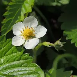 草莓花,别名洋莓,学名Fragaria ananassa Duch.是蔷薇科草莓属植物中最常见的一种,属多年生草本植物。原产美洲,后在法国进行繁殖,是栽培最广泛的草莓品种。八倍体植物,种子发芽期需10-15天。深红色圆形或心脏形浆果体,肉纯白,萼片和苞片展开。草莓花也象征甜蜜。