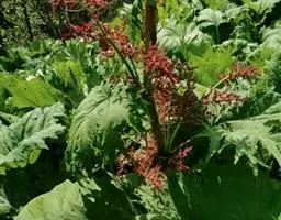 掌叶大黄蓼科,大黄属高大粗壮草本植物,高可达2米,粗壮木质根状茎。茎直立中空,叶片长宽近相等,基部…