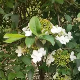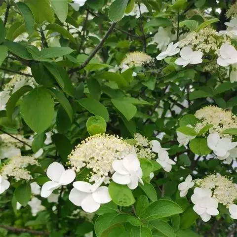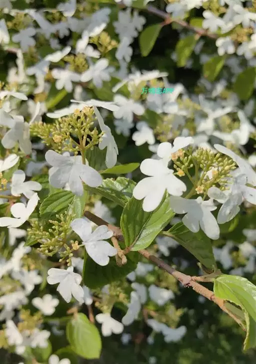 蝴蝶戏珠花(学名:Viburnum plicatum Thunb. var. tomentosum (Thunb.) Miq.)是忍冬科荚蒾属植物。落叶灌木,高达3米;当年小枝浅黄褐色。叶较狭,宽卵形或矩圆状卵形,有时椭圆状倒卵形。花序直径4-10厘米,外围有4-6朵白色、木型的不孕花。果实先红色后变黑色,宽卵圆形或倒卵圆形;核扁,两端钝形。花期4-5月,果熟期8-9月。