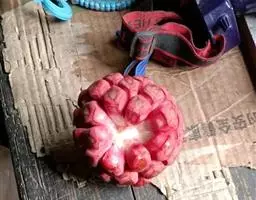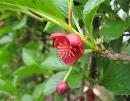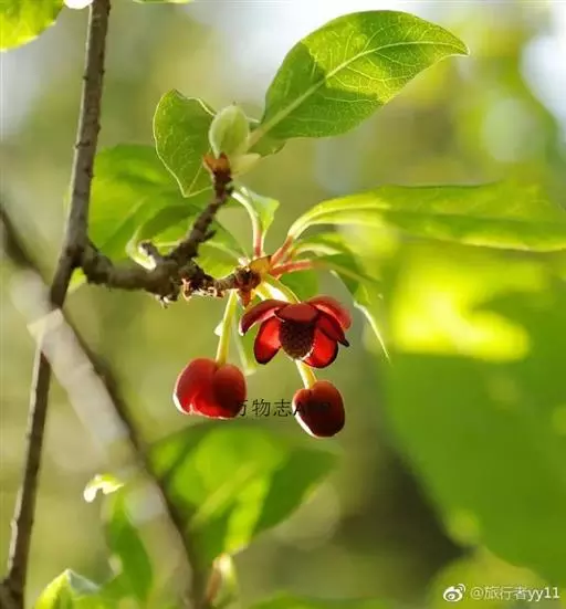 花深红色;雄花;花梗长1-2.8厘米,花被片5-8,近相似,倒卵状椭圆形,最大的长6-14毫米,宽4.5-10毫米,雄蕊群卵圆形,长约8毫米,雄蕊约30-50枚,下部雄蕊具短花丝,上部雄蕊无花丝,花药长0.7-1.4毫米,外侧向开裂,药隔顶端微缺或平;雌花:花梗与花被片与雄花的相似,雌蕊群长圆状椭圆体形,长1厘米,雌蕊80-110枚;子房倒卵形,长约2毫米,鸡冠状柱头面宽约0.5毫米;花柱长约0.5毫米,下延成长约0.5毫米的附属体。
