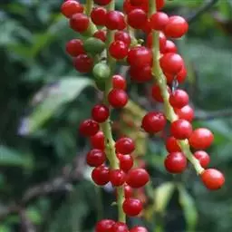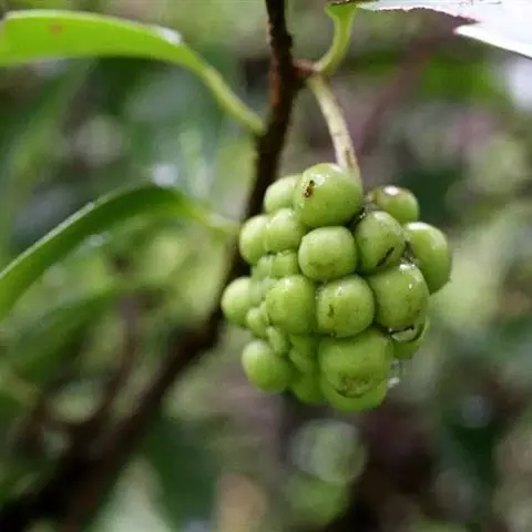 聚合果托长6-15厘米,直径约5毫米;聚合果柄长约3-6厘米;小浆果椭圆形。种子椭圆形,长4-4.5毫米,内种皮灰白色,背具细乳头状凸起或有皱纹,种脐微凹。花期5-6月,果期8-9月。