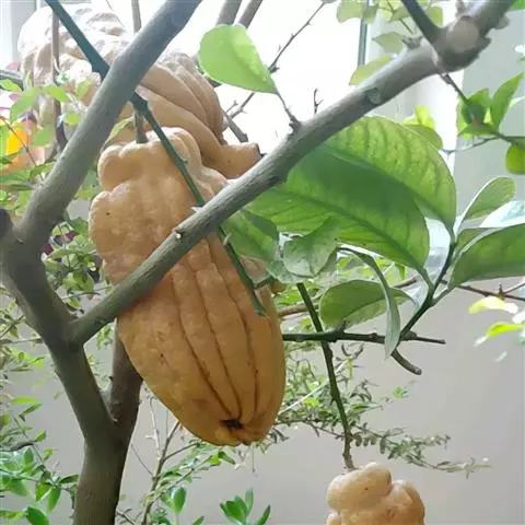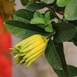 香橼为小乔木或灌木状;株高达5米;幼枝、芽及花蕾均暗紫红色;茎枝多刺,长达4厘米;单叶,…