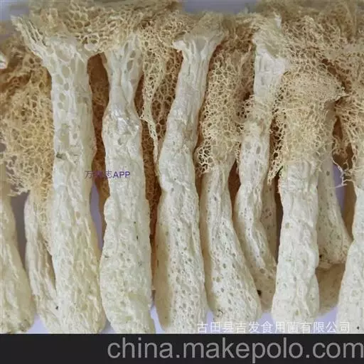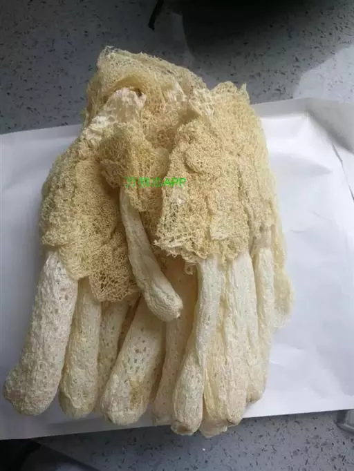 竹荪(干)做法指导:干品烹制前应先用淡盐水泡发,并剪去菌盖头(封闭的一端),否则会有怪味。