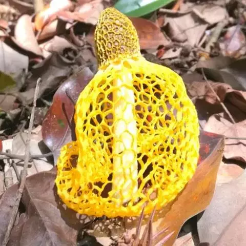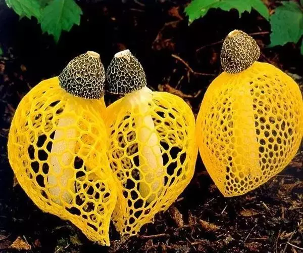 2.在众多的竹荪品种中,有一种黄裙竹荪,也叫杂色荪,菌裙的颜色为橘黄色或柠檬黄色,这种黄裙竹荪有毒,不可食用。