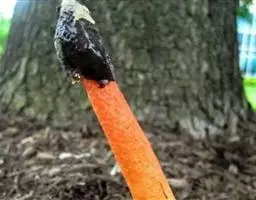 2.烟灰菌:常发生在高温高湿环境,初期在竹荪畦面覆土层出现脏白色绒毛状菌丝,很快变成粉红色、黑色,菌落呈深烟灰色,并产生大量的黑色孢子,其主要为害竹荪菌丝,导致菌丝断裂,直至死亡。早期出现脏白色绒毛状菌丝时为治疗最佳期,可直接在病症处喷洒3%石碳酸或者2%甲醛;当出现黑色孢子时,可用福尔马林20倍+70%甲基托布津可湿性粉剂700倍稀释液喷施;严重时,在发病处周围挖断培养料,在患处及周围撒新鲜石灰,并用塑料膜将病患处盖住,控制其扩散。