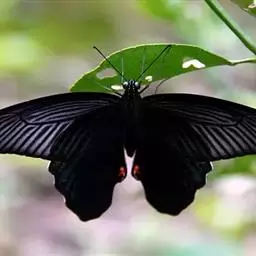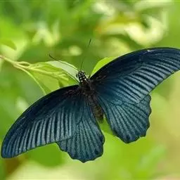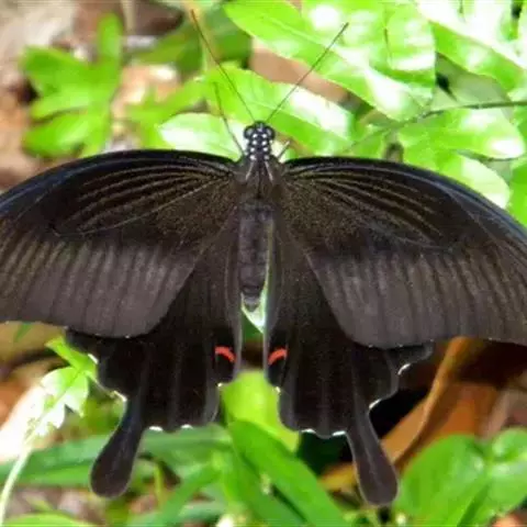 美凤蝶(Papiliomemnon)又名多型凤蝶,是一种雌雄异型的蝴蝶。“memnon”为希腊神话中的埃塞俄比亚国王,足以显示出这种蝴蝶的雍容华贵。该蝶展翅有105—130毫米,雄性翅正面蓝黑色,呈天鹅绒状,前翅反面基部有1个大红斑,该斑有时在前翅正面亦会现。