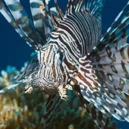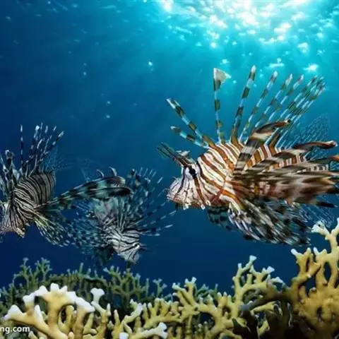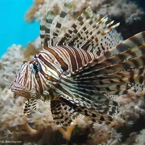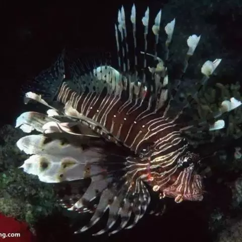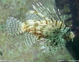 斑鳍蓑鲉是鲉科,蓑鲉属硬骨鱼。体长25-40厘米,体表黄色,布有红色至棕色条纹。背部有毒棘,胸鳍羽…