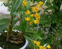 通常选用四壁多孔的塑料或陶瓷花盆,用碳根、泥炭藓、树皮块、木炭块等作盆栽材料。根据兰苗的大小,选择不同规格的花盆,但不宜用大盆栽小苗口上述栽好材料在使用前必需在清水中浸泡1天以上备用。盆底要多垫大瓦片或碎砖块,深度至盆底约1/3处,然后将兰苗放于盆中央,并在一旁插一细竹竿以固定兰苗,再填入其他栽培材料,注意根与根之间用材料隔开。