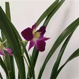大苞鞘石斛(学名:Dendrobium wardianum Warner):茎斜立或下垂,肉质状肥厚,圆柱形不分枝,具多节;节间多少肿胀呈棒状。叶薄革质,二列,狭长圆形。总状花序从落了叶的老茎中部以上部分发出,具1-3朵花;花大,开展,白色带紫色先端;花瓣宽长圆形,与中萼片等长而较宽,达2.8厘米,先端钝,基部具短爪,具5条主脉和许多支脉;唇瓣白色带紫色先端,宽卵形。花期3-5月。