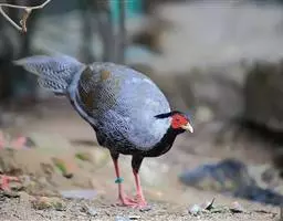 蓝鹇是雉科、鹇属一种大型雉类。体长50-80厘米。雄鸟头颈黑色,羽冠白色,有时杂以黑斑;脸红色,…
