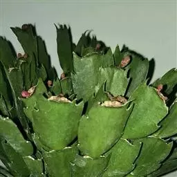 1、蟹爪兰茎节(叶片)为扁平状,叶片边缘有尖齿,形如蟹爪。