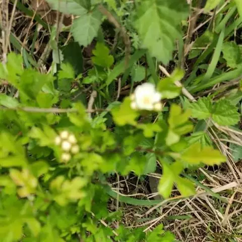 伞房花序具多花,直径4-6厘米,总花梗和花梗均被柔毛,花后脱落,减少,花梗长4-7毫米;苞片膜质,线状披针形,长约6-8毫米,先端渐尖,边缘具腺齿,早落;花直径约1.5厘米;萼筒钟状,长4-5毫米,外面密被灰白色柔毛;萼片三角卵形至披针形,先端渐尖,全缘,约与萼筒等长,内外两面均无毛,或在内面顶端有髯毛;花瓣倒卵形或近圆形,长7-8毫米,宽5-6毫米,白色;雄蕊20,短于花瓣,花药粉红色;花柱3-5,基部被柔毛,柱头头状。