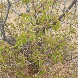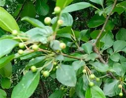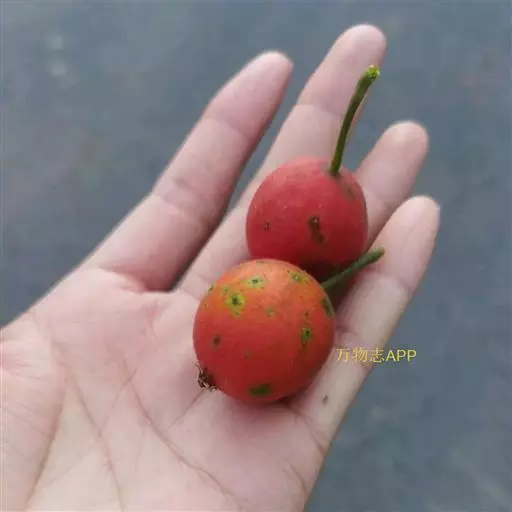 果实近球形或梨形,直径1-1.5厘米,深红色,有浅色斑点;小核3-5,外面稍具稜,内面两侧平滑;萼片脱落很迟,先端留一圆形深洼。花期5-6月,果期9-10月。