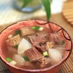 一般以盐卤(氯化镁)点制,其特点是硬度较大、韧性较强、含水量较低,口感很“粗”,味微甜略苦,但蛋白质含量最高。尽管北豆腐有点苦味,但其镁、钙的含量更高一些,能帮助降低血压和血管紧张度,预防心血管疾病的发生,还有强健骨骼和牙齿的作用。
