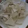 为使豆腐进一步排水,以达到规定的质量,还需在整理完毕后,用豆腐压豆腐的方法进行压榨,压榨约30分钟。豆腐经压榨后,会在四周结成表皮,使产品坚挺而有弹性。