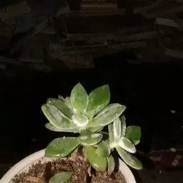 十字星锦肉质叶灰绿至浅绿色,叶片两边黄色或红色的锦,叶面有绿色斑点,叶缘温差大会稍具红色,在晚秋和早春,温差大的时候叶缘红色尤为明显,所以冬季是十字星锦最漂亮的时候。植株的叶片交互对生,卵状三角形,无叶柄,基部连在一起,新叶上下叠生,成叶上下有少许间隔。开花为米黄色,4~6月开放。