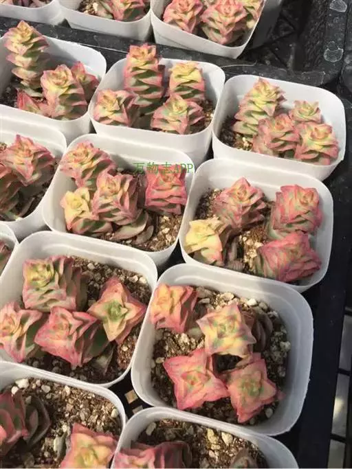 粉红十字星锦繁殖一般就是砍头(扦插,分株),取健康有生长点的枝条,按照3至5厘米高左右一段剪下,晾干伤口扦插,也可以直接扦插在干的颗粒土中,几天后少量给水,十字星锦是非常好繁殖的一个品种,叶片和叶片间容易长出很多小根。碰到合适的土壤就会把根牢牢扎在土里。砍头繁殖还有一个好处就是可以让母株得到更好的造型,有心的花友可以尝试尝试,砍头后的地方会重新萌发新的生长点,有的会萌发2个枝条。砍头次数多了,植株会呈现倒锥形。头重脚轻,这个时候就要用东西来支持了。