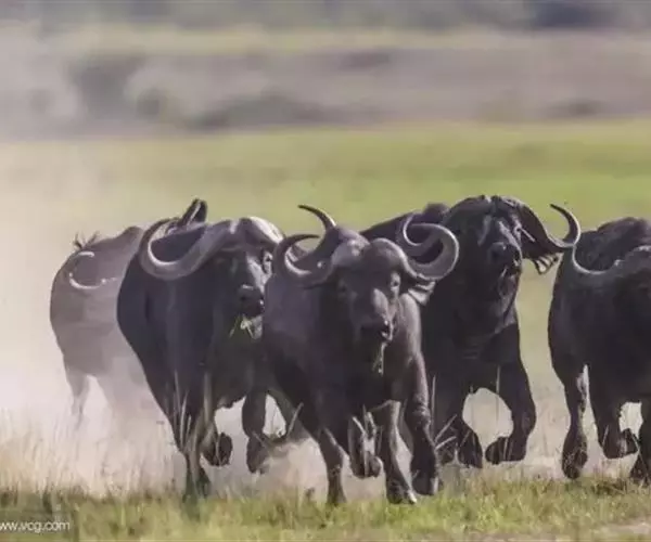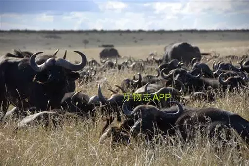 非洲野水牛:共有5个亚种。头体长2.1-3.4米,身高1-1.7米,体重300-900千克。胸膛宽…