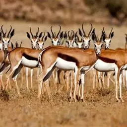 跳羚是哺乳纲、偶蹄目、牛科哺乳动物,属于中型的羚羊。四肢细长;背面毛色黄褐,…