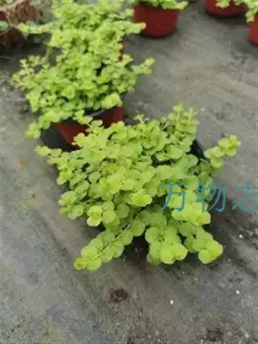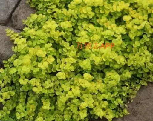 金叶过路黄(Lysimachia nummularia ‘Aurea’)是报春花科、珍珠菜属植物。多年生蔓性草本,常绿,株高约5厘米,枝条匍匐生长,可达60厘米,单叶对生,圆形,基部心形长约2厘米,早春至秋季金黄色,冬季霜后略带暗红色;夏季6-7月开花,单花,黄色尖端向上翻成杯形,亮黄色,花径约2厘米,因花色与叶色相近,常不大受人注意。喜光耐荫,耐水湿,耐寒性强,具有清热解毒,散瘀消肿,利湿退黄之功效。原产于欧洲、美国东部等地,现在中国广泛栽培。