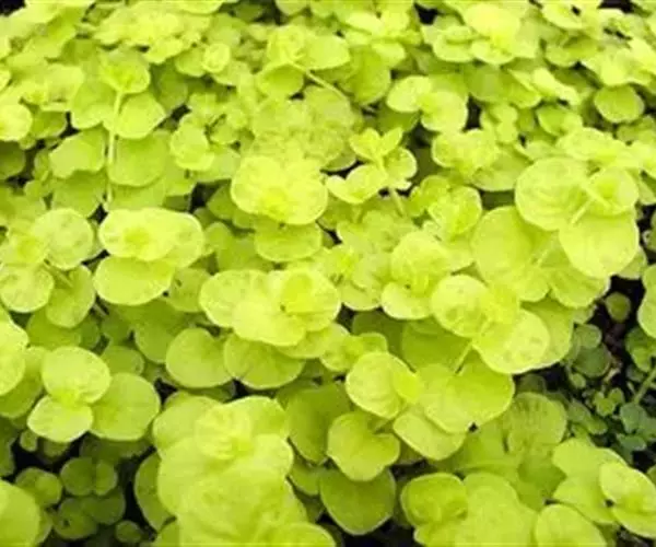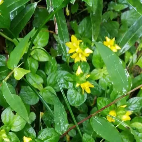 其植株匍匐生长,株高仅为10厘米左右,但地表匍匐茎生长旺盛,最长可达1米以上;其茎节较短,节间能萌发地生根,匍匐性较强。金叶过路黄的叶片为卵圆形,单叶对生,叶色金黄,其花期为5-7月,开杯状黄花。