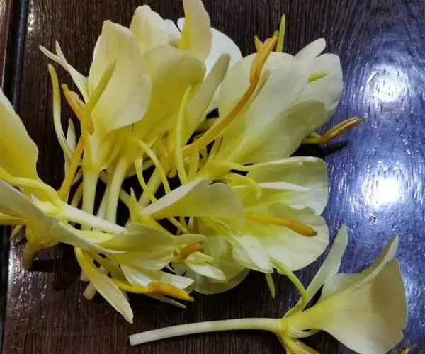 黄姜花被信奉佛教的人们纳入到了“五树六花”的行列,这绝非偶然,由于佛教对香气十分重视,常常用它来比喻修行的德性,供奉佛祖和菩萨时也必须用香,所以气味馥郁的黄姜花能跻身五树六花之列也就顺理成章了。另外,黄姜花采摘下来后直至夜晚都不会凋谢,因此成为人们喜用的宗教花饰材料和必备的寺庙参拜供品。此外,黄姜花的根部提取出的染料还可以染制袈裟。黄姜花的行、味、色均于佛有缘,故称之为人间佛花毫不为过。