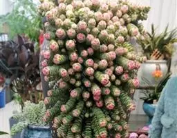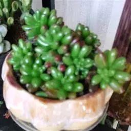玉米石是景天科、景天属植物。多年生草本多浆植物。植株低矮丛生,多分枝。叶膨大成圆筒形、卵形或近小球形,…