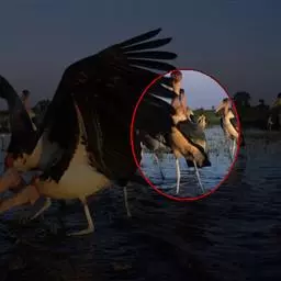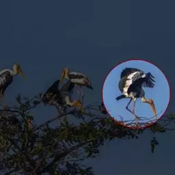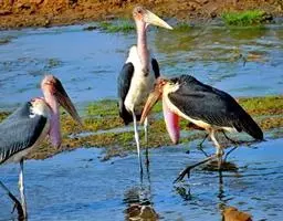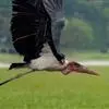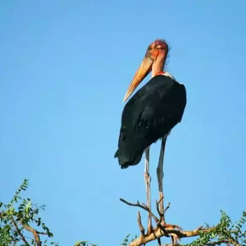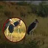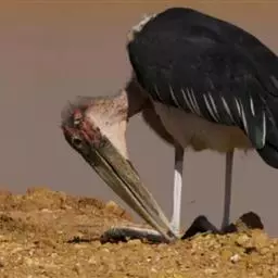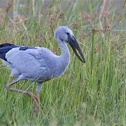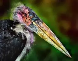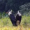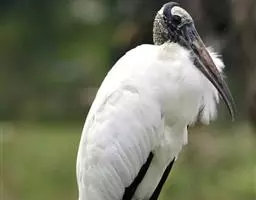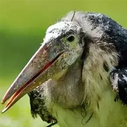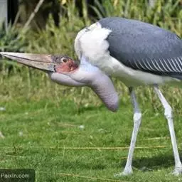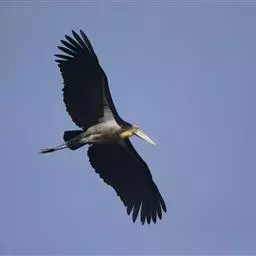 秃鹳(学名:Leptoptilos javanicus)是一种大而笨重的涉禽,体长110-135厘米,体重约10千克,站立时颈直起来,身高可达1.2米。嘴粗而长,脚亦甚长,上体黑灰色,具蓝黑色金属光泽。下体白色,头和颈具稀疏而短的毛发状羽近似裸露,红黄色。飞行时不像其他鹳那样颈向前伸直,而是头缩至肩上,主要通过两翅缓慢扇动、鼓翼飞行。平均每分钟153次。