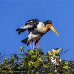 钳嘴鹳:鹳科动物。双翅展开时宽达81厘米。体型很大,体长81厘米。体羽白色至灰色,冬羽烟灰色。…