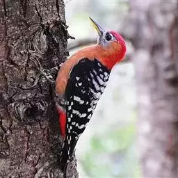 绿啄木鸟是鴷形目啄木鸟科绿啄木鸟属鸟类。雄鸟额和头顶前部辉红色,鲜丽异常;雌鸟头上无红色;嘴尖直,…