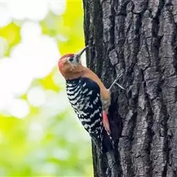 棕腹啄木鸟为啄木鸟科,啄木鸟属是中等体型的鸟类,体长约20厘米。头顶部具红色斑带。脚强健,有趾4个,…
