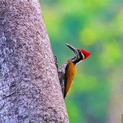 白腹黑啄木鸟,是啄木鸟科、黑啄木鸟属的中型鸟类,体长43-46厘米,头顶具长的红色羽冠,颚纹亦为红色,…