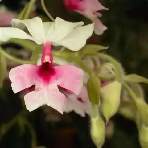 美花石斛是兰科石斛属多年生草本。茎柔弱,斜立或下垂,呈细圆柱形,有时分枝;叶互生于茎上,…
