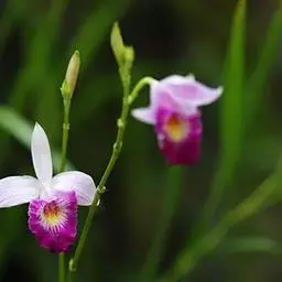 五唇兰(学名:Doritis pulcherrima Lindl.):又称五舌兰,叶丛生,肉质状。基部关节明显,无明显茎。花葶抽生于基部,疏生十余朵小花,花为紫红色,花型奇特。茎很短,具3-6枚近基生的叶。叶上面绿色,背面淡绿或淡紫色,长圆形。花序直立,圆柱形,高出叶外;总状花序长10-13厘米,疏生数朵花;花通常具香气,开放,萼片和花瓣淡紫色;花瓣近倒卵形,比中萼片稍小;唇瓣5裂,基部具弯曲向上而长4毫米的爪。花期7-8月。