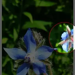 花瓣近倒卵形,比中萼片稍小;唇瓣5裂,基部具弯曲向上而长4毫米的爪;爪的两侧具2枚直立、长方形、长约4毫米的棕红色侧生小裂片,两小侧裂片之间具1枚方形的胼胝体;中裂片大,位于爪的末端,其基生裂片直立,棕红色,近半圆形,长宽约6毫米,先端近圆形;顶裂片淡紫色,较厚,稍向前外弯,舌状,长5毫米,宽2毫米,先端锐尖,上面具3-4条肉质褶片;蕊柱长7毫米,具长约6毫米的蕊柱足;蕊喙狭长,长4毫米,2裂。花期7-8月。