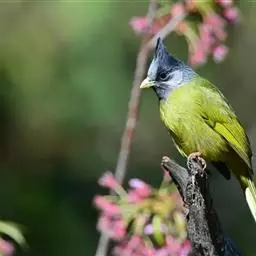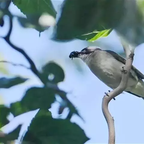 凤头雀嘴鹎:属小型鸟类,体长18-22厘米。嘴粗短、呈象牙色或乳黄色,前额和脸灰色,头顶黑色,…