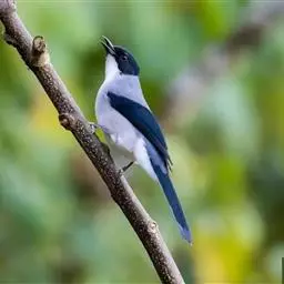 黑冠椋鸟:中等体型的椋鸟,体长21厘米。雄鸟前头为黑色并具金属光泽;头顶、颈项和羽冠亦为黑色;翅及翅上覆羽黑色;尾羽褐色,具白色端斑;上体灰色;下体淡黄褐色。雌鸟形态与雄鸟相似,但羽冠较雄鸟为短。虹膜蓝白或乳黄色;嘴峰铅绿色;跗蹠及爪柠檬黄色。头具黑色羽冠,与其他椋鸟易于区别。主要栖息于开阔落叶阔叶林和灌木林中以及多营巢于树洞中或其他洞穴内。属群鸟共栖。常4-8只结小群活动。鸣声清脆响亮。食物有果实和浆果,偶食花蜜和小型昆虫。分布于印度、中国云南耿马。常见于印度城镇、村庄及铁路沿线。偶见于中国云南西南部和西藏东南部。