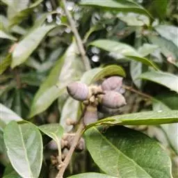 营养袋苗:石栎苗主根生长强,裸根苗移植成活率低,采用营养袋苗造林以确保造林成功。营养土采用黄心土50%+腐殖土30%+火烧土20%配置,营养袋装好土后用竹签在中间插一个深约2厘米的小孔,用于芽苗移植。当芽苗长到2-3厘米时起苗,剪去主根长度1/3-1/2,植入营养袋,轻轻压紧,使根与营养土充分接触,及时浇水,遮上透光率30%的遮荫网,保持土壤湿润,60天后阴雨天期间揭开遮荫网,不再遮荫,以提高苗木的木质化程度,促进苗木的粗壮和根系生长。九月中旬左右,苗木根系开始穿透营养袋,此时进行苗木分级和移袋,不同规格苗木分级管理,促苗木侧根生长。