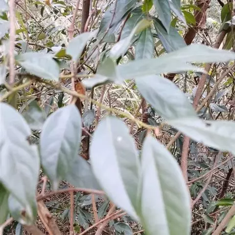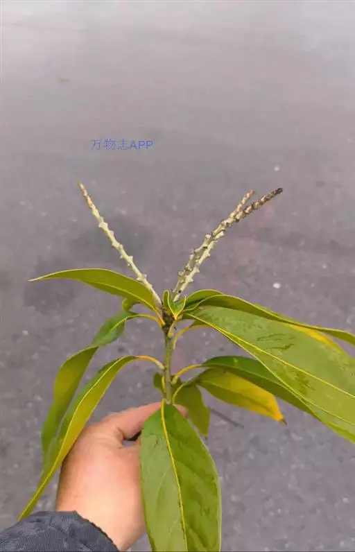 乔木,高15米,胸径40厘米,一年生枝、嫩叶叶柄、叶背及花序轴均密被灰黄色短绒毛,二年生枝的毛较疏且短,常变为污黑色。叶革质或厚纸质倒卵形、倒卵状椭圆形或长椭圆形,长6-14厘米,宽2.5-5.5厘米,顶部突急尖,短尾状,或长渐尖,基部楔形,上部叶缘有2-4个浅裂齿或全缘,中脉在叶面微凸起,侧脉每边很少多于10条,支脉通常不明显,成长叶背面无毛或几无毛,有较厚的蜡鳞层;叶柄长1-2厘米.
