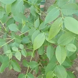 叶长约15-30厘米,叶总柄显著短于叶轴,叶总柄及叶轴初时被稀疏的褐色短柔毛,后来脱落而近无毛,具7-23枚小叶;小叶纸质,侧生小叶无叶柄,对生或生于下端者偶尔有互生,卵状披针形至长椭圆状披针形,长4-11厘米,宽1.5-3.5厘米,不等边,上方一侧较下方一侧为阔,基部歪斜,顶端长渐尖,边缘有锯齿,顶生小叶具长约2-3厘米的小叶柄,基部对称,圆形或阔楔形,小叶上面绿色,近无毛或脉上有褐色短柔毛,下面浅绿色,初时脉上有褐色柔毛,后来脱落,或在侧脉腋内、在基部两侧毛不脱落,甚或毛全不脱落,毛的疏密依不同个体及生境而变异较大。